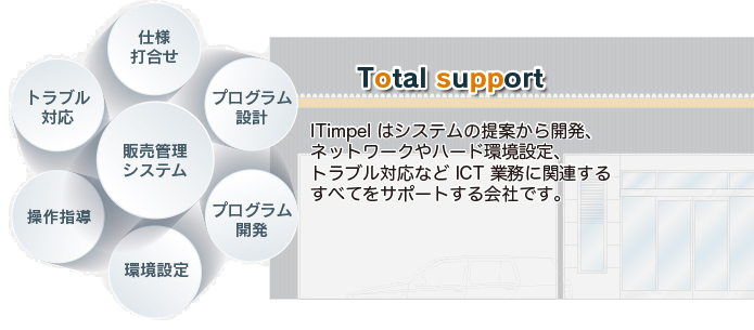 ハードウェア、ネットワーク機器(弊社からご購入)も一緒にトータルサポートを行います。